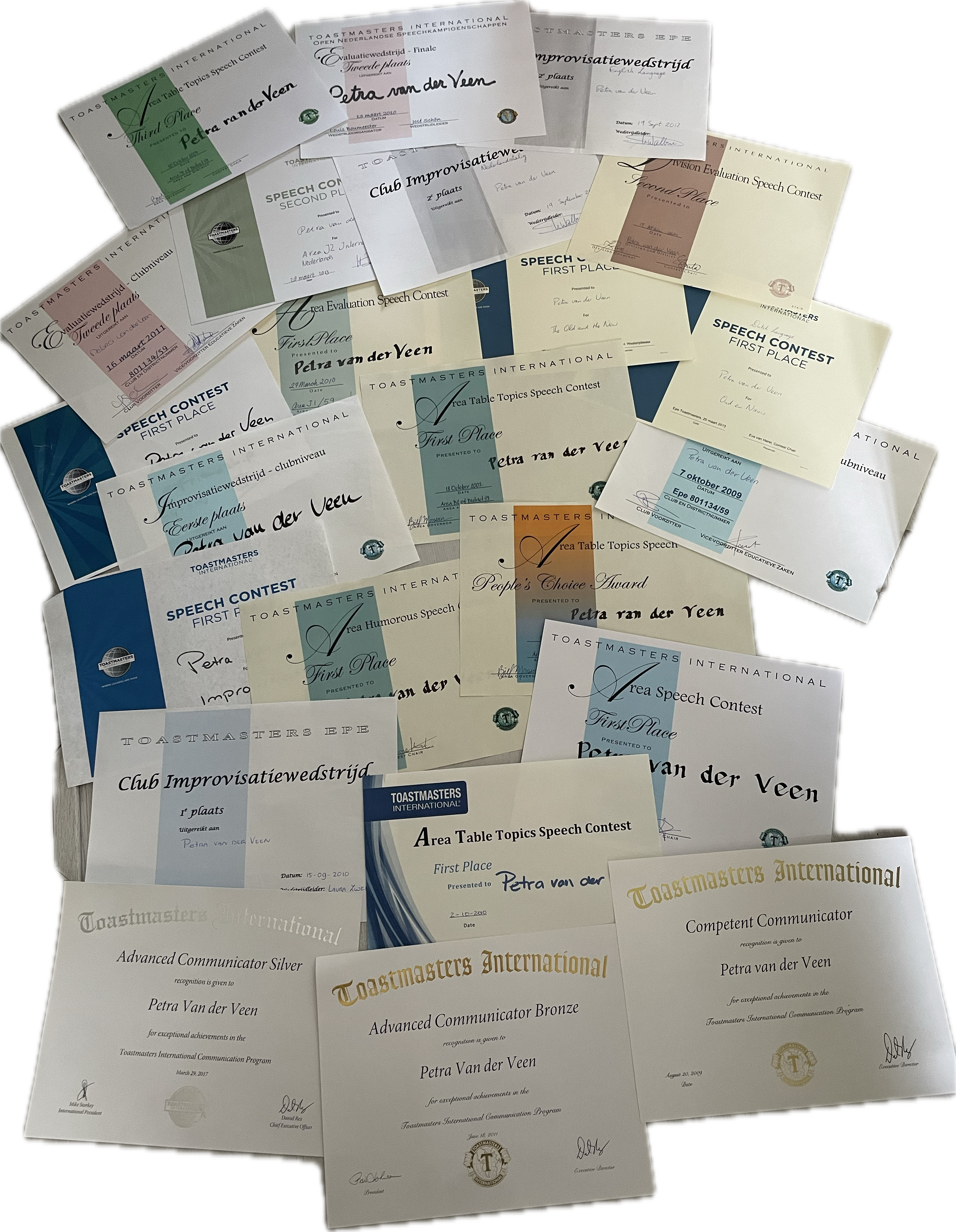 In Nederland sloot Petra zich aan bij Toastmasters International, waar ze meer dan 10 jaar actief was. Ze won meerdere nationale en internationale sprekerswedstrijden en ontwikkelde zich tot een krachtige spreker én trainer in het openbaar spreken.